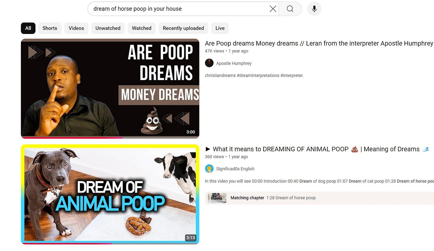 To my surprise, there were tons of interpretations for "horse poop in the house."