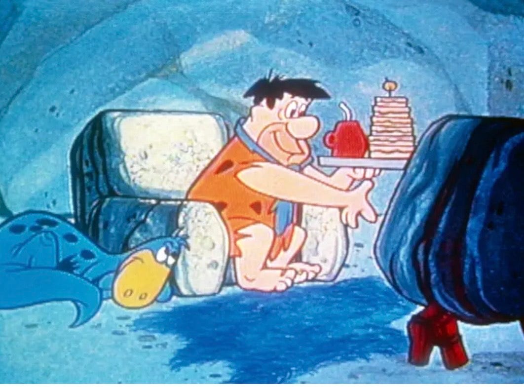 Growing up, it was definitely The Flinstones—a smooth name for a prehistoric crew that invented foot-powered cars and bowling with rocks.
