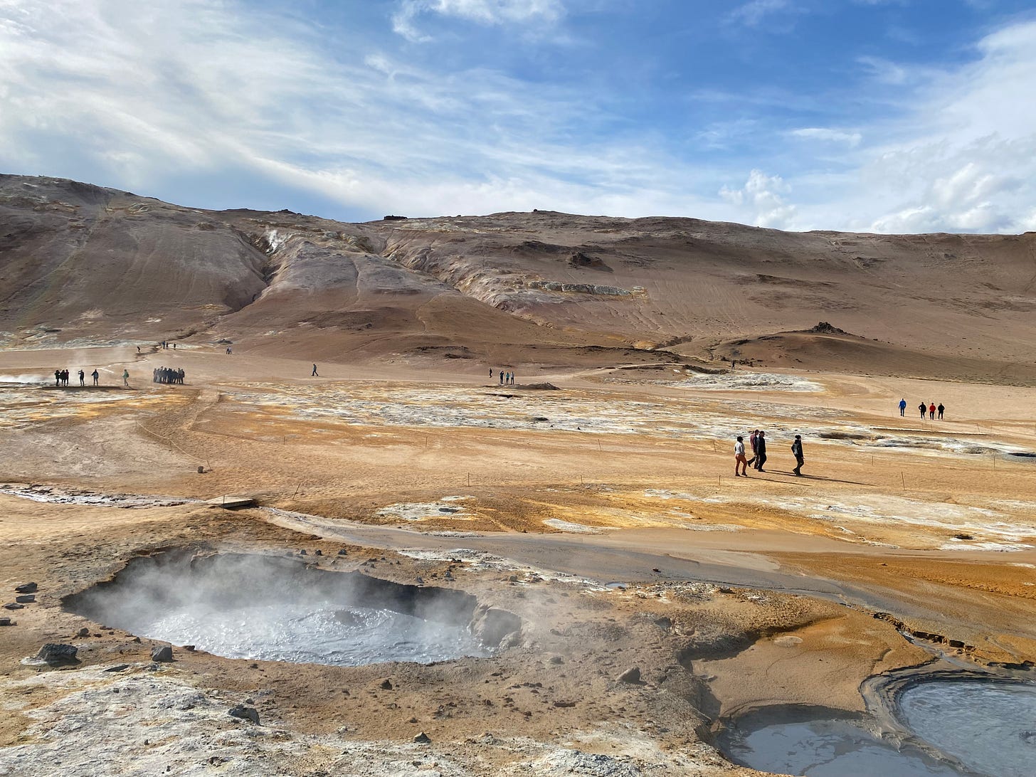 Hverir Geothermic Landscapes: We explored the unique geothermic areas on the east side of Lake Mývatn. There are beautiful colors in the landscape and boiling mud pools. A unique sight for sure.