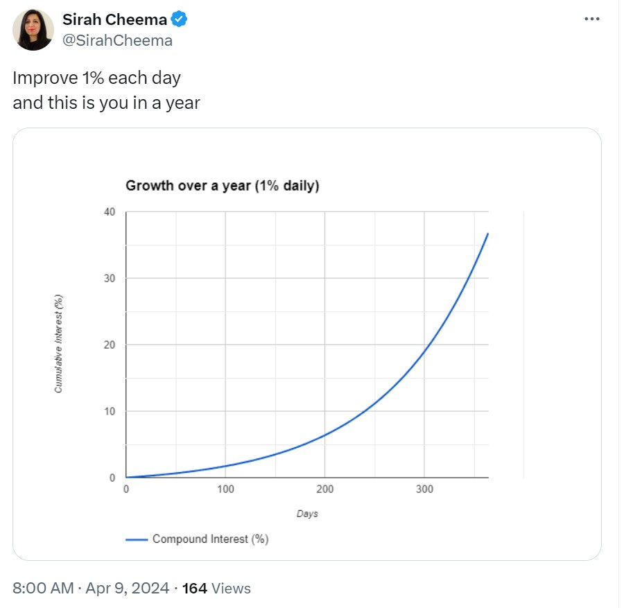 Even getting 1% better every day gets you 37 times better by the end of a year.